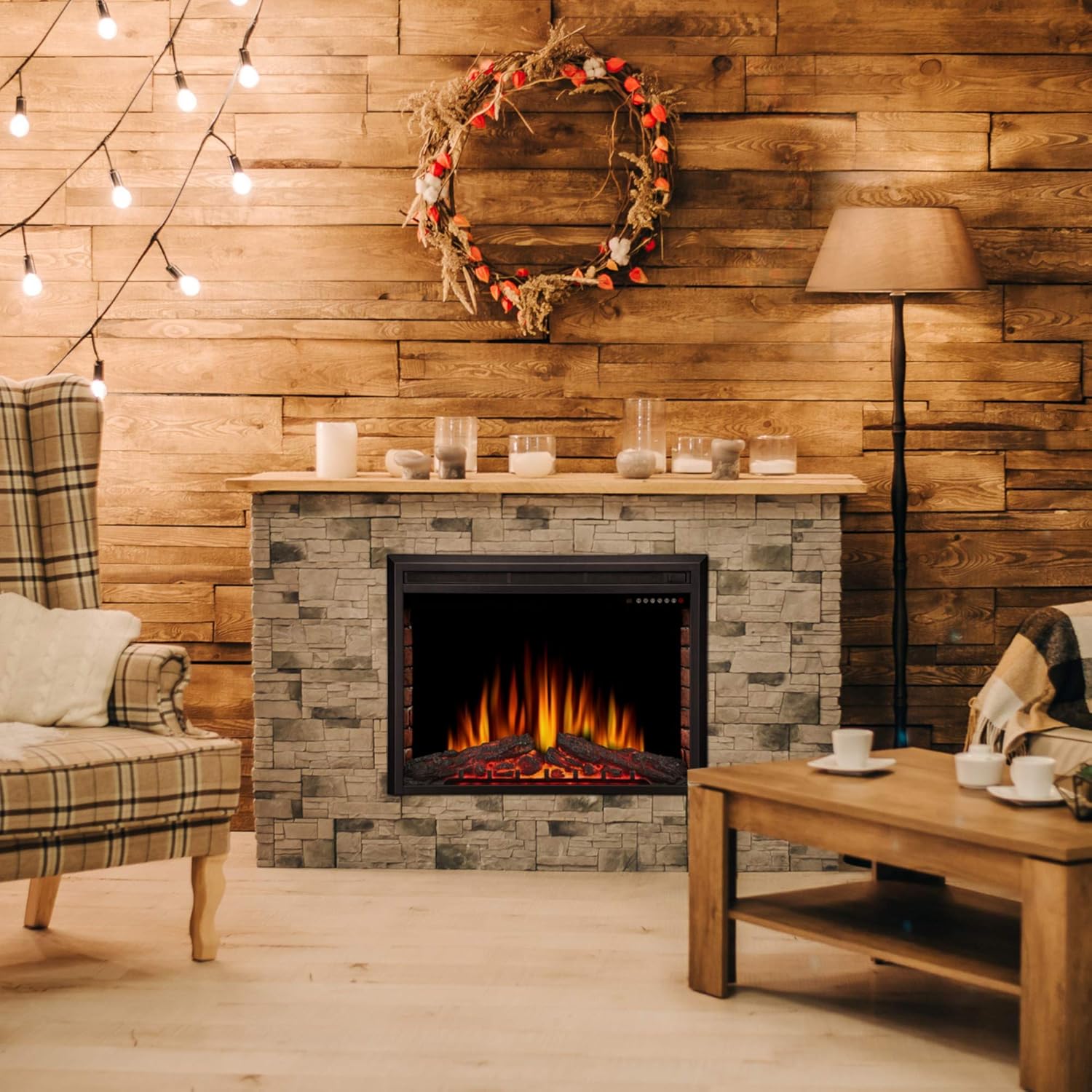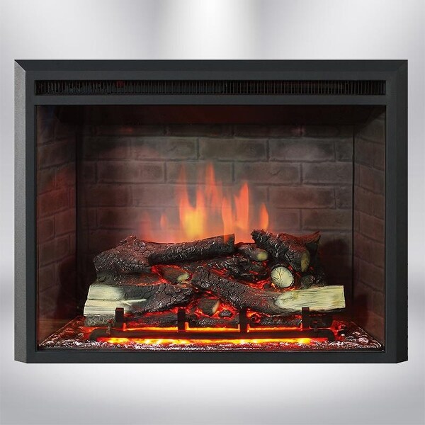 Bring instant ambiance to your room with minor installation effort. 32″ 3d infrared quartz electric fireplace insert with safer plug™ and safer sensor™. Sawyer industrial electric fireplace mantel with realistic log and grate insert and color changing flames, walnut. 95 list list price $499.95 $ 499. Stylishly flat front radius with led viewing area.